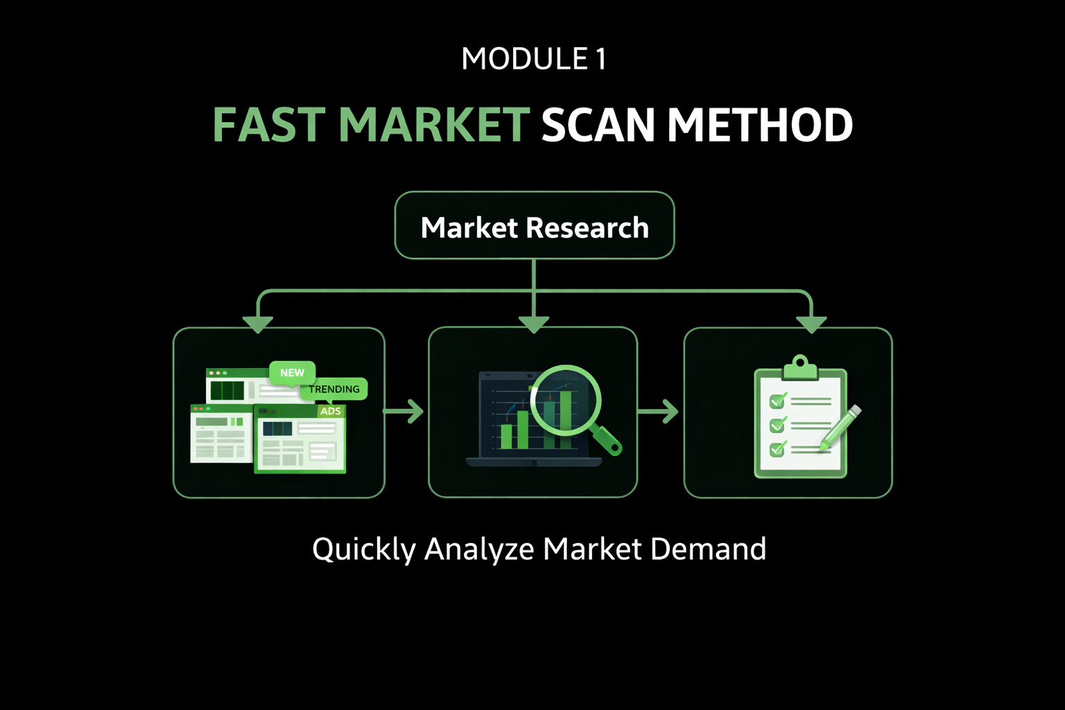 Step-by-step system to research, create, launch, read, and scale ads.
